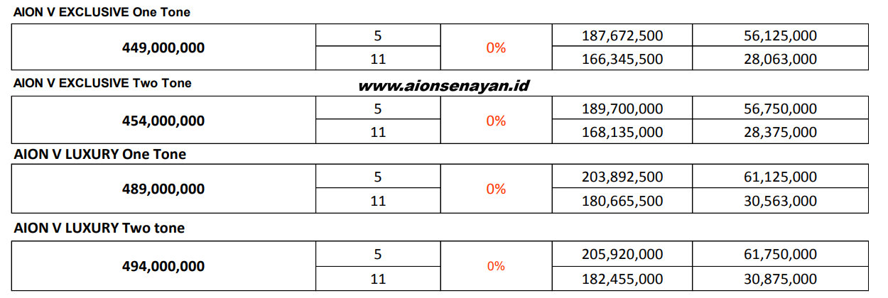 Banyak dealer menawarkan promo cicilan Aion V seperti: